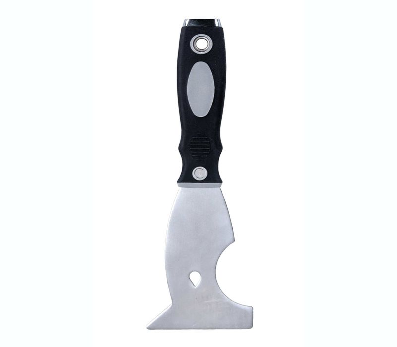 Espátula de acero inoxidable multifunción con mango ergonómico para innumerables usos.