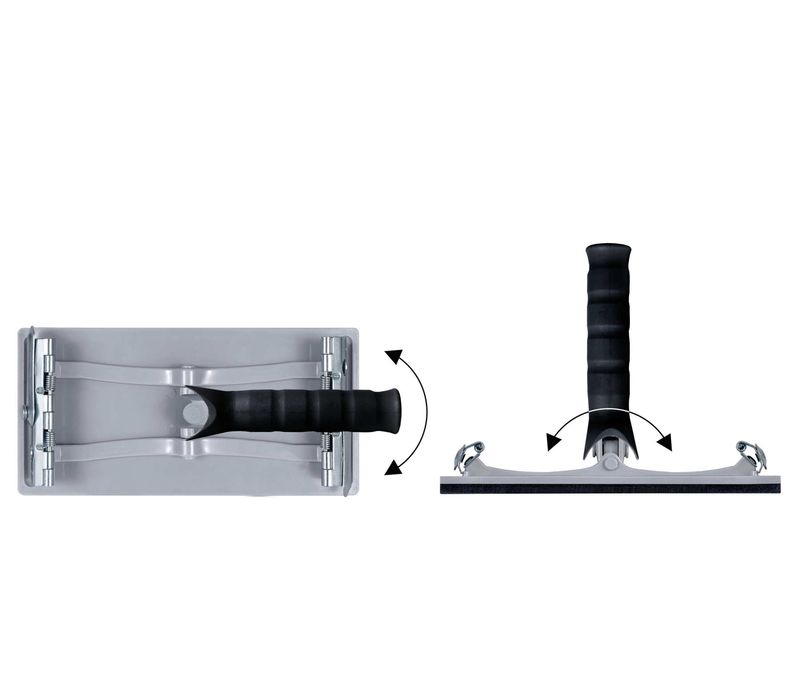Lijadora manual rectangular para paredes y techos. Cuerpo ABS con acolchado  de EVA. Cabezal orientable con rosca para mango. Fijación con clip de ajuste lateral. Medidas 210mmx105mm.