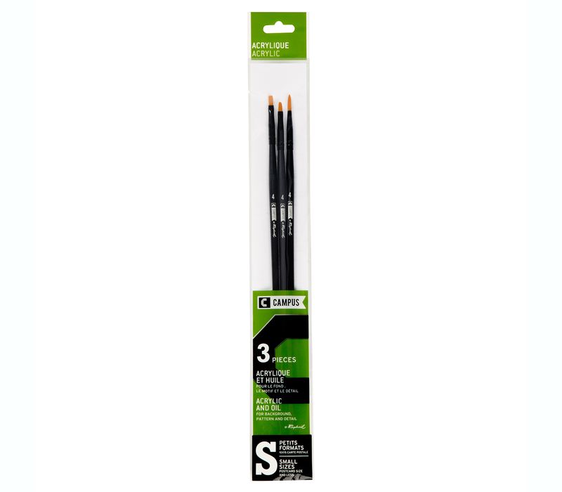 Pinceles Campus Acrílico, tres unidades surtidas, especial para acrílico y óleo. Tamaño: S