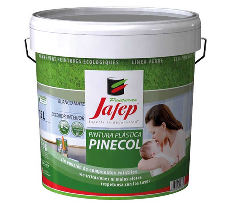 Pintura plástica mate Pinecol Ecológica especialmente indicada para la decoración de interiores, permite ocupar las habitaciones de forma inmediata sin malos olores y respetando el medio ambiente.