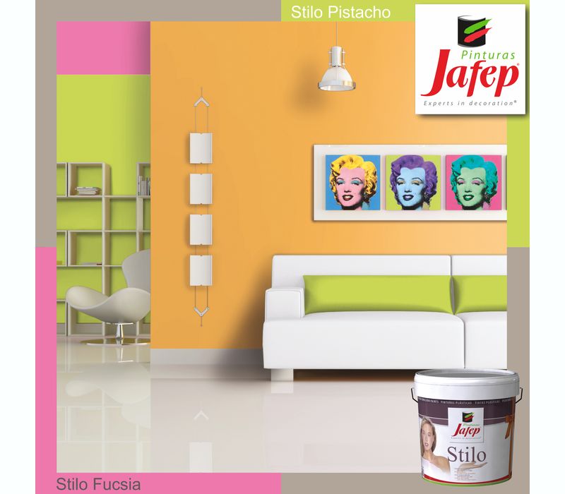 Pintura plástica mate acrílica Stilo Jafep de gran cubrición. Se presenta en envase de 4 litros y 750 ml. Ficha Técnica    Carta de Colores